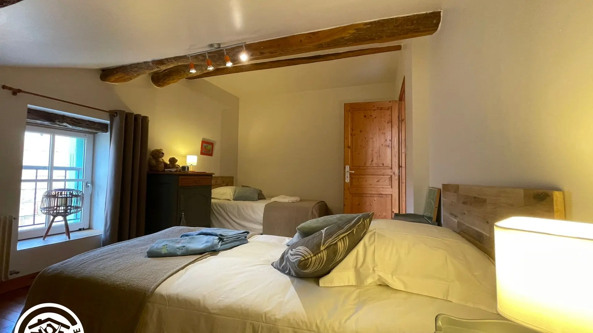 Cette maison traditionnelle du XVIIIème siècle vous offre, au rez-de-chaussée, un séjour/salon avec poêle à bois, une cuisine (accès par une marche) et un WC. A l'étage, vous trouverez une première chambre mansardée équipée de 2 lits (90x190) jumelables, une salle de bain/WC, et deux autres chambres (accès par une marche) chacune équipée de 2 lits (90x200) jumelables. A l'extérieur, vous disposerez d'un terrain clos d'environ 60m² avec terrasse (salon de jardin, bains de soleil, plancha électrique, râtelier à vélos). Depuis l'extérieur, vous accèderez au local chaufferie où se trouve le lave-linge et vous aurez la possibilité d'abriter vos vélos.